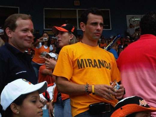 06 de julio 2011.-El gobernador del estado Miranda (centro), Henrique Capriles Radonski, no se deja conmover y sigue empeñado en ser Presidente del país. Así lo reafirmó hoy, cuando expresó que la estrategia electoral no cambiará pese a la “probable” enfermedad del presidente, Hugo Chávez.